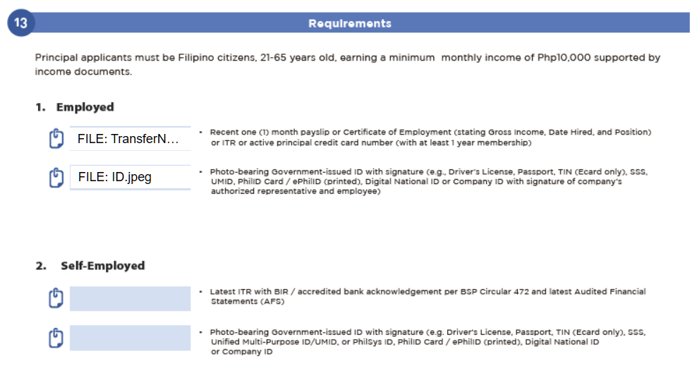 Depending on your employment status and nationality, the form will inform you what documents you need to upload.