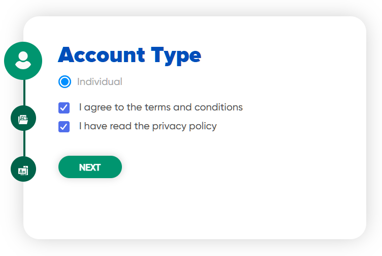 2. Choose Individual as your account type and agree to the terms and conditions.