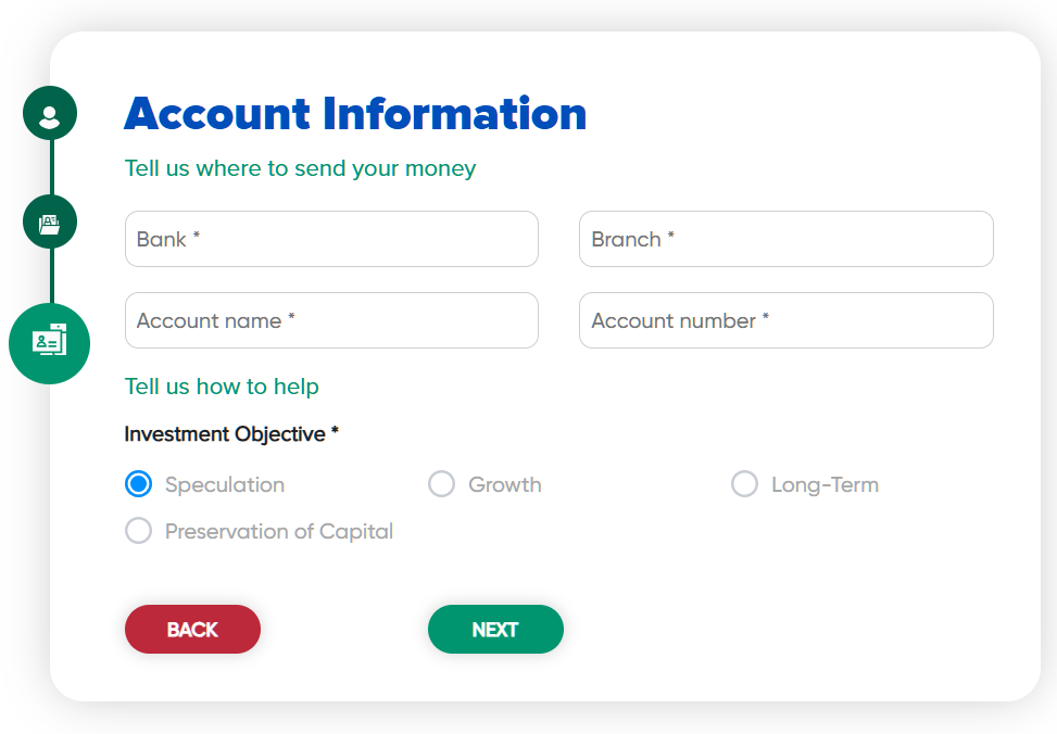 4. Input your personal and financial details. For a more personalized experience, choose your investment objective.
