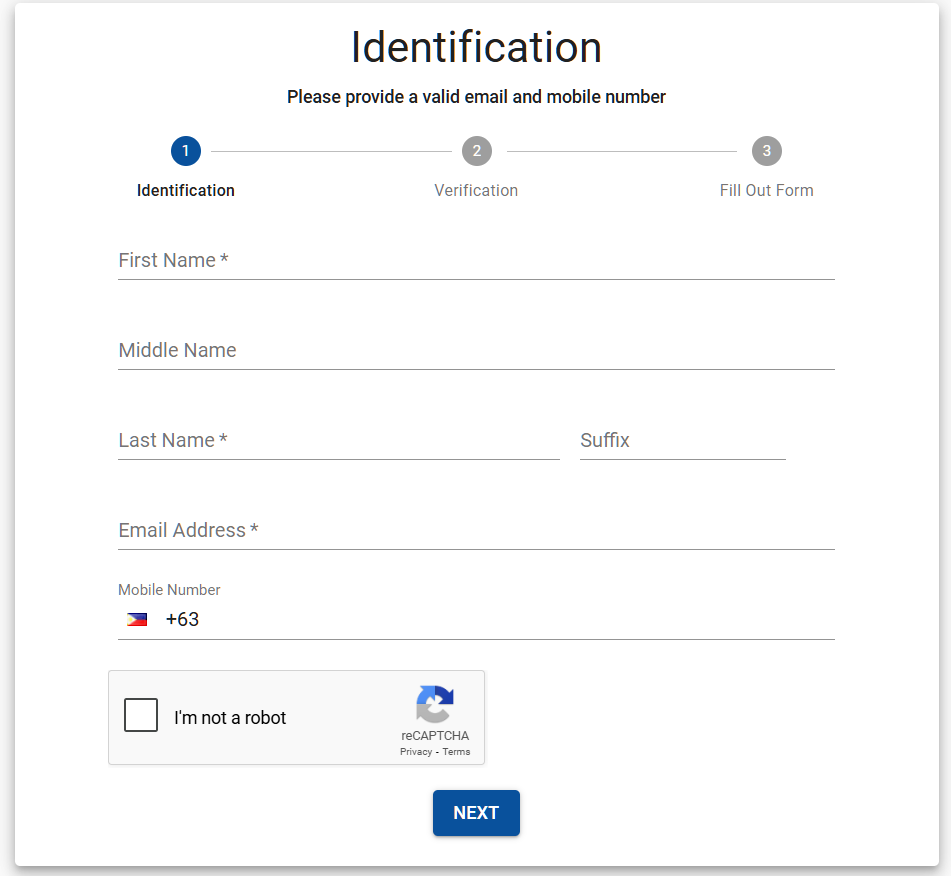 3. Fill out the online application form. Make sure to use an active email address and mobile number because you need to verify them before you can proceed.