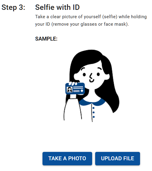 6. Complete the identification requirements. You have to prepare a blank sheet of paper, a valid government-issued ID, and yourself for the selfie and video verification. Finalize and submit.