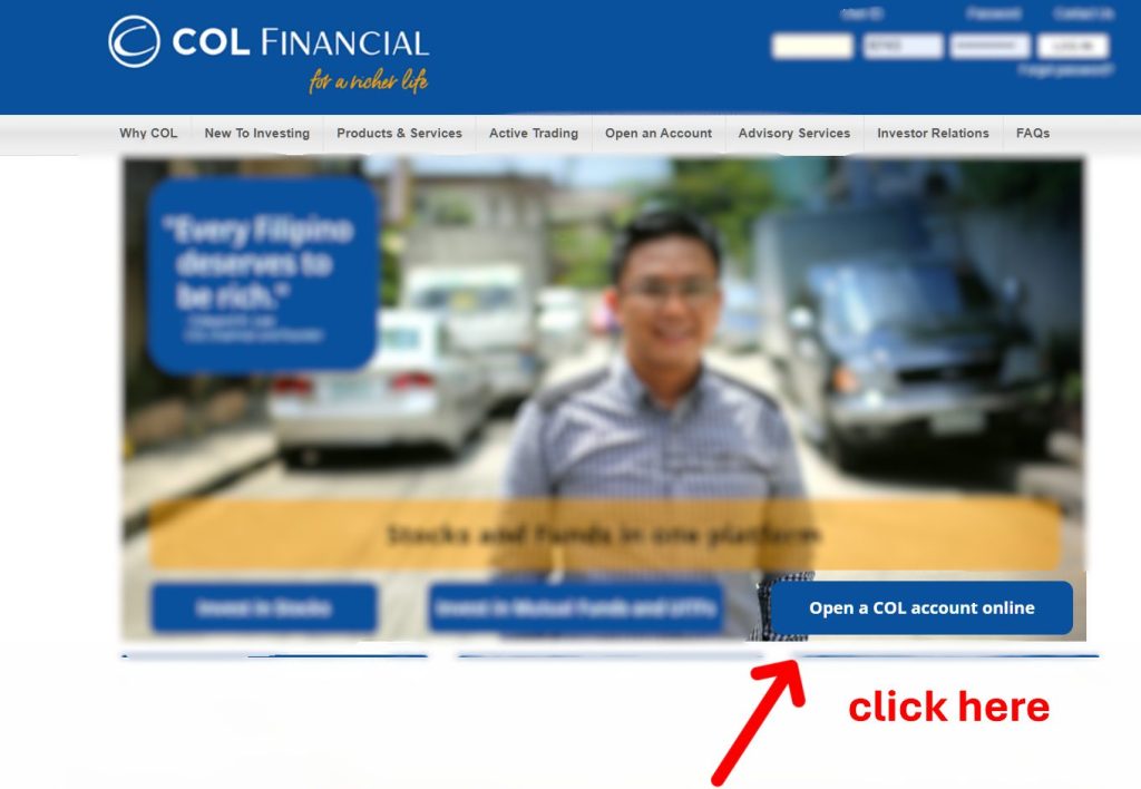 - Visit the official COL Financial website and click “Open a COL account online.”